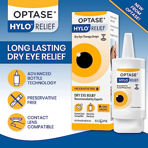 OPTASE HYLO Relief Dry Eye Drops - Fast-Acting Preservative Free Eye Drops for Dry Eyes - With Patented HYLO Delivery System - Artificial Tears for Mild to Moderate Dry Eye Relief - .33 Oz, 300 Doses