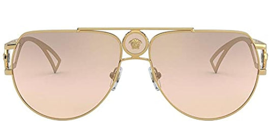 Versace VE2225 Sunglasses Gold Frame, Brown Mirror Gold Gradient Lenses, 60MM